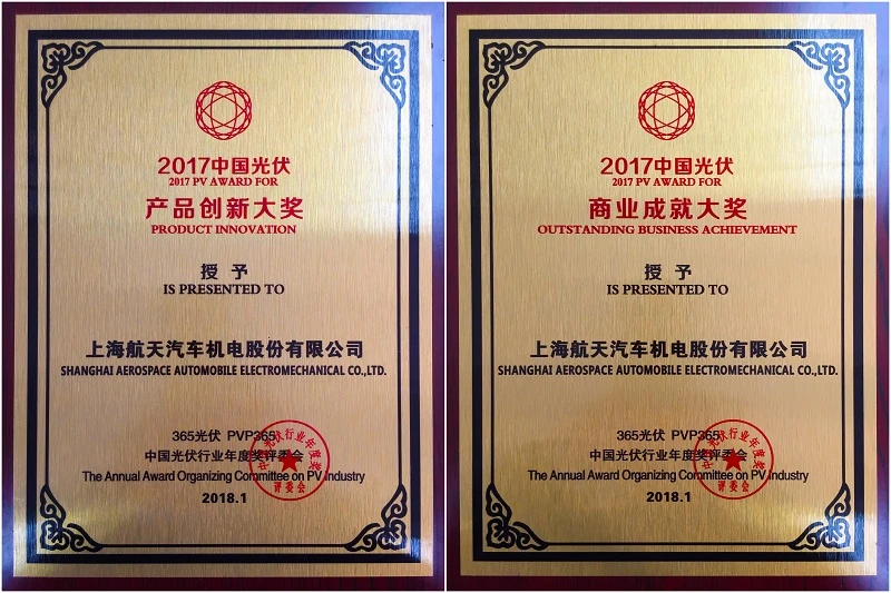 日前,航天机电应邀出席了由365光伏主办的2017中国光伏行业年会暨第五届中国光伏行业年度奖颁奖典礼,并一举揽获“2017中国光伏商业成就大奖”和“2017中国光伏产品创新大奖”。