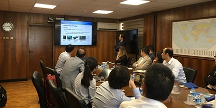 The color of blue and white alternate with each other, with the space blue as the basic tone combined with gradient effect, sense of both modernization and technology are realized. The whole background is like the earth and the vast sky. Three vertical strokes and horizontal strokes run through the background, indicating that by upholding three spirits of China Aerospace, all major industries and all fronts are united in their efforts for steady development and the pursuit of excellence, reflecting the corporate philosophy of Creating the Future Wholeheartedly.