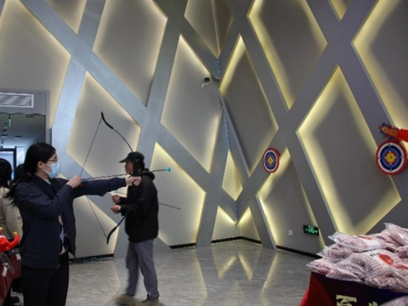 员工们领取了游园券,穿梭在各个打卡项目中:猜灯谜、射箭、巧接绣球。大家互相传授快速通关的技巧,现场鼓掌喝彩声不断,其乐融融。